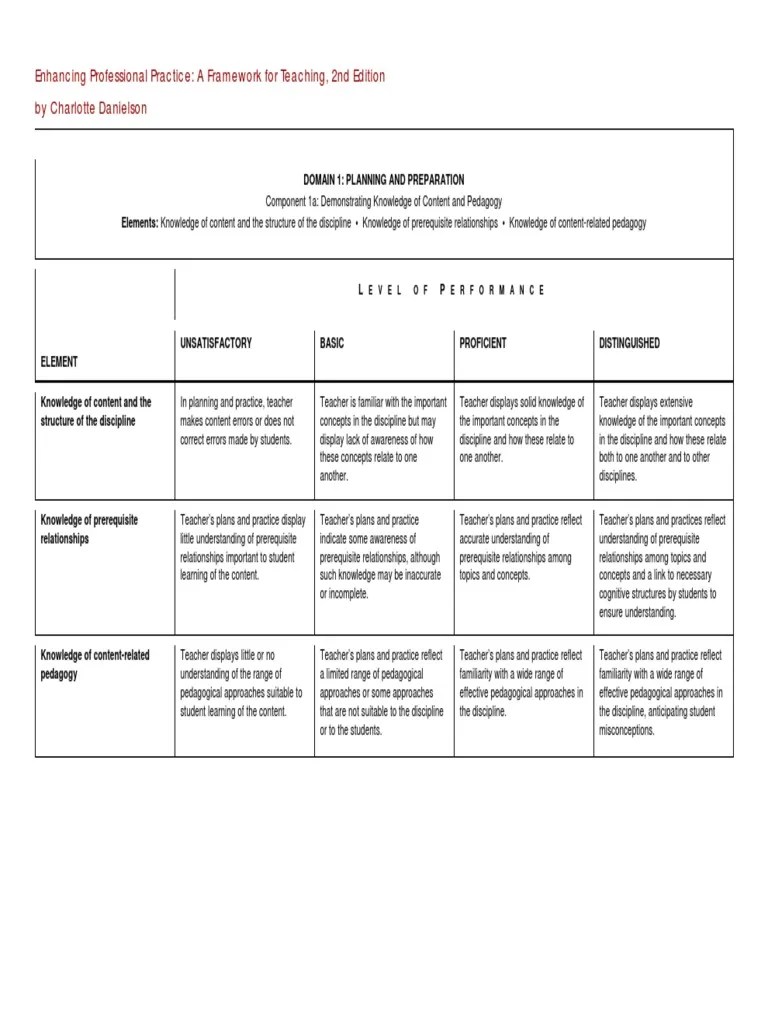 Danielson Rubric PDF Educational Assessment Pedagogy