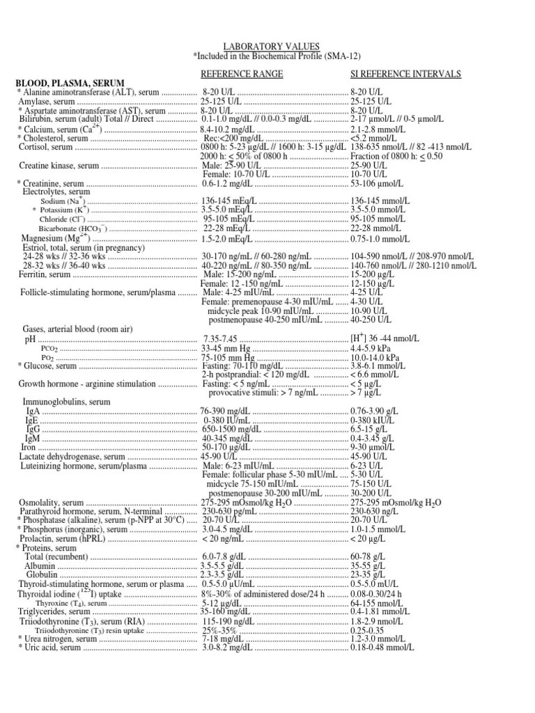 Traditional units are followed in parentheses by equivalent values expressed in s.i. Web ence values for common laboratory te ts1 for common laboratory tests1. You can download a summary or cheat sheet of this normal laboratory values guide below. Web 282 rows a patient's blood test values should be interpreted based on the reference value of the laboratory in which.